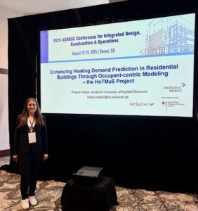 At the ASHRAE Conference for Integrated Design, Construction & Operations (CIDCO) in Denver, Colorado, she presented the HoTMuS project – a DATIpilot project funded by the BMFTR. It addresses the question of how residents’ behavior affects heating energy requirements. Even the most modern technology can only work as efficiently as it is used in everyday life. Using the example of a tiny house community, the study shows which behaviors have a particular impact on energy consumption and how better forecasts can be used to tap into potential savings. “It was exciting to see how much interest there is in the topic of user behavior. Many colleagues from a wide range of countries reported that they face similar challenges in their work,” says Regina Weger.